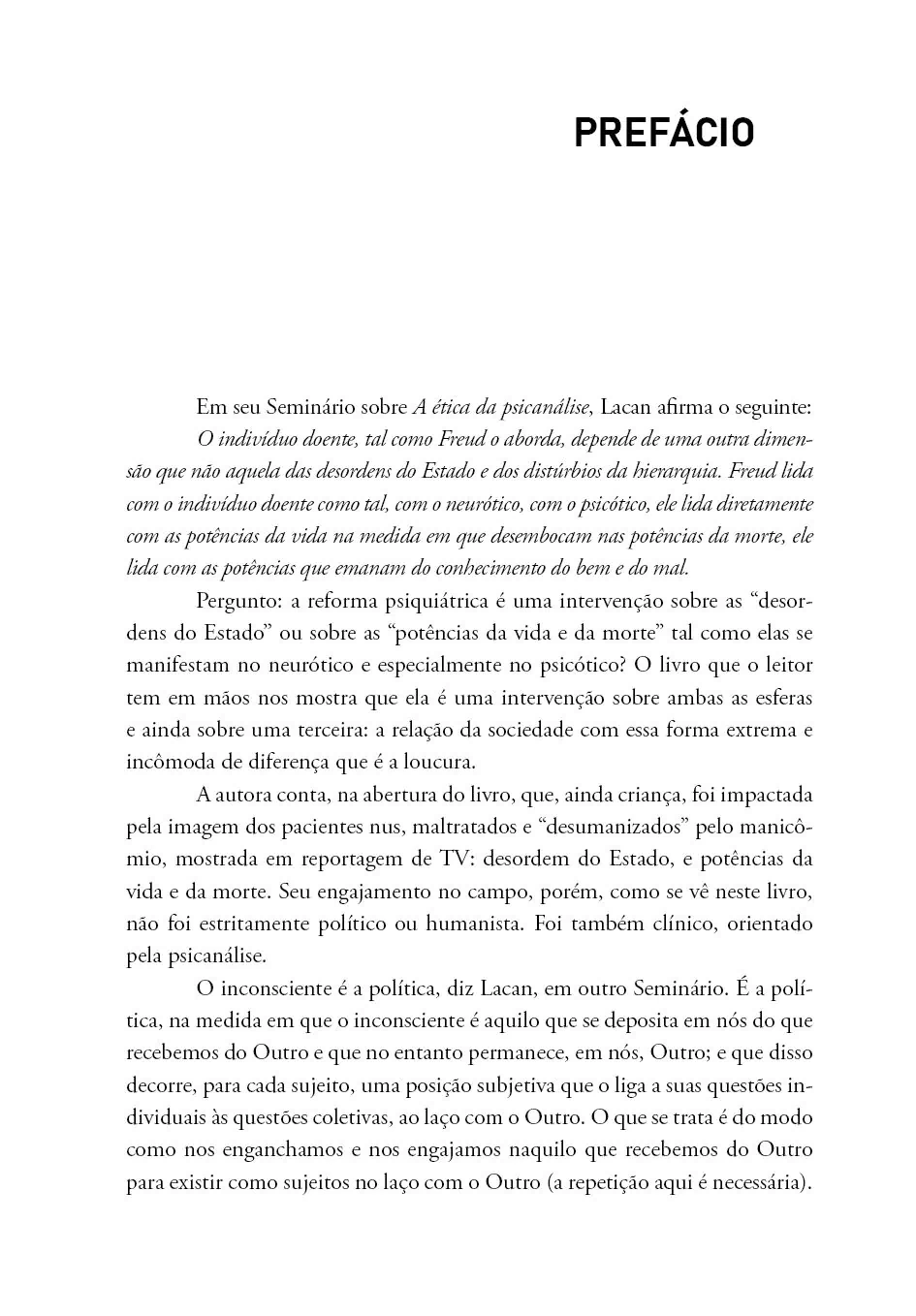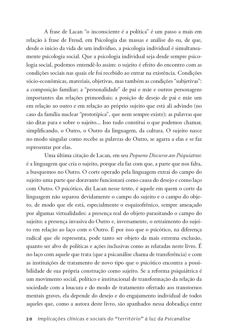 “No momento em que as desordens do Estado e as potências de morte em nossa sociedade estão tão acentuadas, o livro de Rejane nos lembra das potências de vida contidas no desejo daqueles que tratam e na resistência daqueles que sofrem. Ele é bem-vindo como registro e defesa da reforma psiquiátrica, como contribuição ao campo clínico-institucional da saúde mental e como leitura útil àqueles que estão construindo seu próprio caminho na assistência, desbravando seus territórios pessoais e os difíceis territórios do desejo de tratar e de se engajar na construção coletiva do presente e do futuro”.